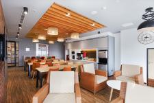 We won the project based on our design which amplified and used the volume of the selected site to its entirety! We had an 18' high ceiling that allowed us to celebrate the space thru larger than life pendants and graffiti along the exposed slabs in addition to the vibrant colours on the floor plate.