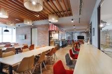 Worker amenities include a full blown cafe, children's play centre, quiet reflective spaces, outdoor terraces and a few quiet rooms.
