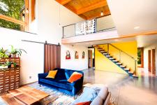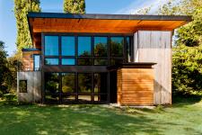 Recognizing the client’s enthusiasm for a unique design approach, Coates Design worked with them to retain most of the “container-like” design, capturing the original configuration of two stacks of two containers each, and separated by an open span and a simple span roof to create a unique architectural design for the musicians’ house.