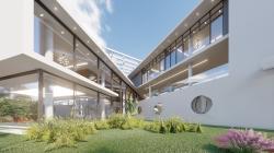 The structure consists of 3 main masses coming together at different angles. Each mass has different volumes. As these different volumes come together, they create dynamic spaces between the 3 masses. The house has 2000 m2 closed area. The spaces of the house bring the interior spaces closer to nature with its geometry that is dispersed in the green area and touches the green.