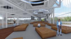 Foyers are located on the east side of the building. There will be the pool in the north, and the foyer of the basketball and volleyball hall in the south. Direct entry from the foyer to the management offices, which are hidden in the structure with steps, will be possible by stairs or elevators. The relationship between the foyer and sports areas and the Millet Bahçesi Park was created by providing a blurred visibility with the polycarbonate facade.