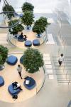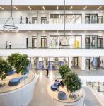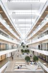 The building’s central grand atrium − an interconnected volume from the ground floor to level five − facilitates exiting and circulation between levels while integrated spectator seating and the large open ground floor base of the atrium allow for both formal and informal gatherings and activities. As the atrium ascends, its landings are punctuated by tree pods housing Ficus King Amstel trees, bringing nature indoors and offering more intimate space for pause, reflection, informal study, and social encounters. In this way, the atrium becomes the incubator for the cross-fertilization of ideas between disciplines and encourages interdisciplinary interactions.