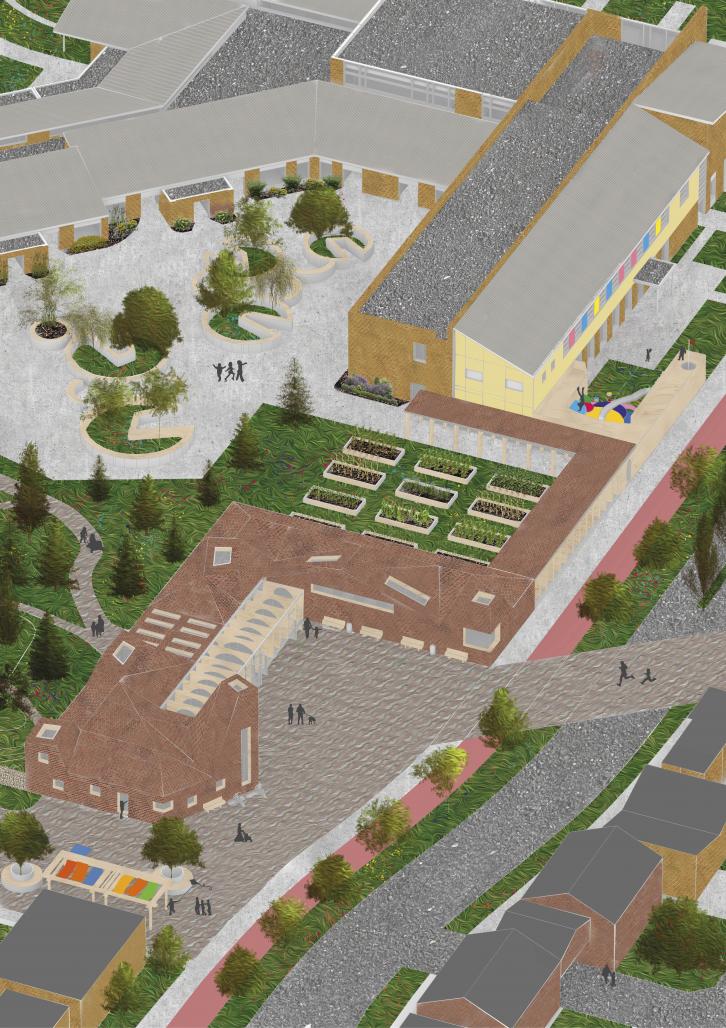 The goal of my design project was two-fold. Firstly, it sought to help relieve the short-term lack of community infrastructure by enhancing the current ad-hoc community wing to better serve as a safe space for play for local children. Secondly, it aimed to explore the long-term potentials of the blend between civic and institutional uses. By establishing a permanent civic space within the school, new connections between the school and its community are made and the communal spirit of the micro-wing preserved.