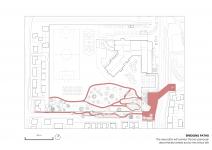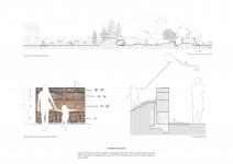As a part of the total urban strategy, the project also included landscape elements in the form of a revamped school park and redesigned pedestrian path. A lower gabion wall will replace and soften the previously impervious brick walls which enclosed the schoolyard. The different gabions layers each contain materials drawn from the extension wing's materiality and from nearby construction sites. The new wall not only creates a more permeable and 'human' boundary but also form a 'green' wall by providing habitation for local insects and fauna.