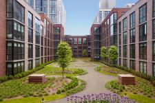 Virtually no two units are identical in this building, with over 66 unique layouts. There are duplex townhouse units with entries off the street that are surrounded by front gardens, much like other townhouses in the neighborhood. Many units have private roof terraces, while everyone