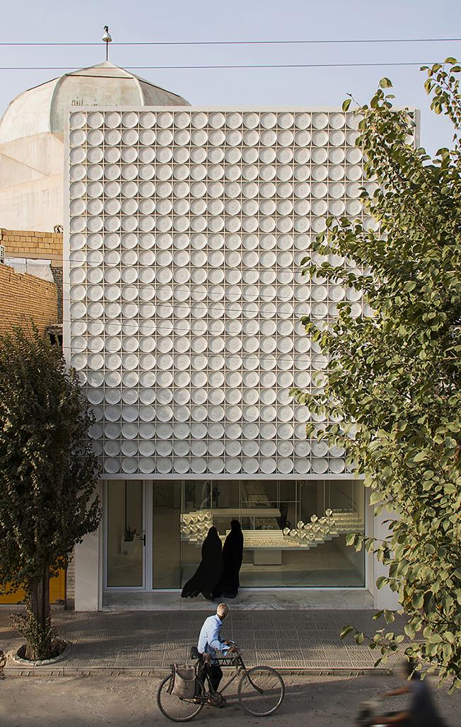 The main design question of this project was how to design a jewelry shop in a city with a historical and cultural legacy that, in addition to meeting the needs of the project, is dedicated to its culture and city and makes distance from existing stereotypes, such as the use of luxury materials. By studying the history of the city and its historical and cultural elements, the pottery industry came to our attention. A noteworthy point of the pottery is their designs which are mostly symbolic and have their origins in ancient rituals. The image of the sun is one of the ancient motifs in pottery that has its roots in the significance of the sun in this climate (hot and dry) and the culture of polytheism. The concepts in this historical-cultural motif and its alignment with the concepts in the project, such as brightness, light and value, led us to use it as a design model. By replacing this motif with crystal lamps in the middle of the ceramic plate, in addition to providing the lighting needed by the project, we tried to modernize this object in the body of the project. The plates were supplied according to our need for designing and required strength in the handicraft workshops of the region.