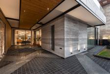 Barrier-Free Home - Mr. Praveen Sekhri’s neoteric residence is an epitome of the proposition ‘Simple Living and High Thinking’ as propagated by Mahatma Gandhi. This article shall take one to an engaging visual experience of this residence. The vision is to consider a one-family inclusive home where the entire family lives blissfully together in harmony. We achieve this with its Simple Living in terms of spaces curated instead of the Architectural Manifestations. Facing us, the exterior facade of the abode is a spectacular vista of horizontal, diagonal, and vertical slits. The boundary wall is cladded with stone. The Mild steel tubes used in pergola at the upper level and vertical slits at the right end seamlessly highlight a light and shadow effect.