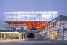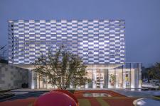 The building consists of several glass boxes stacked on top of each other, creating a plaza at street corner, a children's playground, a multi-function terrace, a grand staircase, and a community gateway space. Using various compositional techniques, the design of curtain wall patterns seeks unity while seeking variations. It also implies the sequence of one’s perception of the building mass, starting from the whole building complex, to different parts of the building, then to the details of the façade, which introduce a more intimate human scale. With the simple order which the glass boxes generate during the daytime, and the lighting effects it has at nightfall, the project brings a flavor of a new era to this initially abandoned outskirt area.