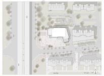 Program: Sales office (future community space and senior center)/Fashion store/Bakery/Gym/Restaurant/Outdoor playground