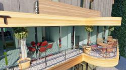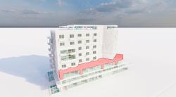 It is covered 3th and 4th floors with wood frames and exploded in 2 direction as floor height with glass facades. One of them on the up side of restaurant corner and other exploded frame with glass on the north side of our building.