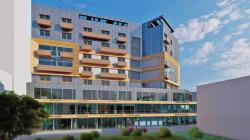 These 2 different directions of double floor glass facades give motion to our building facades while you are booking from small sqaure area which is one main corner of the building.