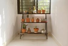 To encourage the family communicative learning, the central courtyard is designed to connect all the common functions and the circulation spaces both horizontally & vertically. On ground floor, the courtyard is surrounded by the prayer space/ temple on the north, a little gardening space on the east, the dining zone on the south and finally the entrance and stair on the west. On 1st floor, the void space is surrounded by the family living on the south and the circulation space on the west, connecting the whole duplex unit. There are tulsi plants in the gardening zone with scope for some other plants.