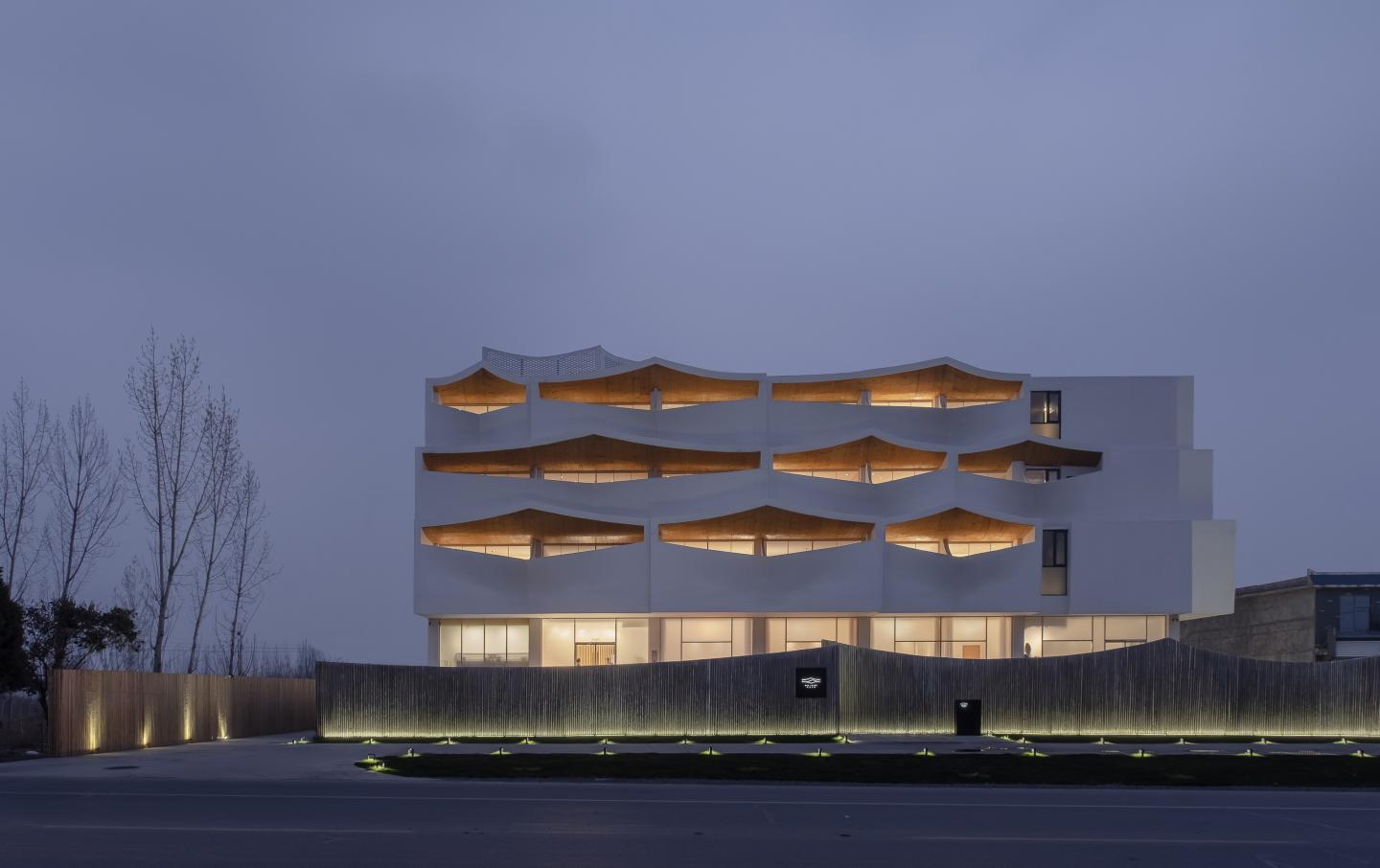 Located in a small, rural town in central China, this complex consists of 48 hotel rooms, restaurant with independent circulation, banquet hall, swimming pools, underground parking and spaces preserved for later phase development. Surrounded by unfinished building site, wasted land and industrial sites, this project is definitely not blessed with a beautiful site. The site area, construction budget and time are also incredibly tight and limited. Fortunately, Taihang Mountain is still visible from the site.