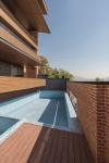 We also have a number of private terraces in addition to these domestic terraces. Despite the fact that the building is located in a height, which has a great view to Lavasan and also a beautiful lake, the location of the cemetery on the western side of the site forced us to not have any kind of openings in that area. According to this, we suggested a rotation in the general volume; not only does it have more aesthetic possibilities but also provides wide openings for the users, giving them a spectacular view while not facing the cemetery at all. Through this rotation and also the extended terraces, we aimed to create a significant situation in which there is no direct view from the neighbors, providing privacy in spaces such as yard and pool.
