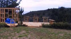 new year`s pavilion on the great barrier island, new zealand. as part of a master plan for 31 ha. on a remote grassy and topographically challenging site, a pavilion was to be built to commemorate the new year`s clebration of 2004. the party lasted 2 nights and 3 days. the pavilion was built by myself using a hammer, a chain saw and tape measure.