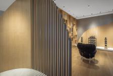 The flow falling from mid-air accumulates into a small area of water, so there is a rest area along the curve of wall. After seating, the palette of white, gray and wood spreads out in layers, where some areas are in bright light like day, while some are hidden in the shadows of gray like twilight.