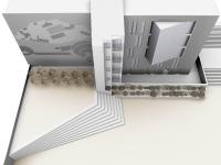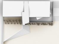The proposed project involves redesigning the facades of the east and south through the recurrence of anchored to the vertical elements that develop throughout its height. These elements are designed steel with a variable that project on the facade blind, to the south, drawing a shadow on the same plant dell`acropoli Athens. The picture drawn by the shadows is perceived differently during different times of day, while at night is presented by the same elements that illuminate with the energy accumulated during the day. Continuity of south facade is interrupted by the presence of the body of central, which intends to maintain the current configuration, as witness the prospectus existing complaint that the contrast of the proposed. Dell`edificio 17 is rethought the composition of the facade; openings become vertical cuts very close, in line with the system of warping of prospectuses, while the function of current openings are absorbed by the volume of glass that incastra in with giacitura a parallel to that of the Parthenon. The volume also penetrates the glass facade east of recovering the relationship with the outside first denied the presence of adjacent to it. The two different quotas, the museum and green, are together with steps which enables it to fruition and at the same time ensure a possible place to stop outdoors. The height of 17 is riproporzionata depending on the height of 19 to allow greater visibility from dell`acropoli museum Tschumi.