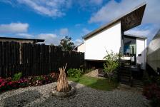The client required to design a place not only for living but also for hospitality service with a low budget as well. The site challenged the architects with its narrow and prolonging parameters, where the length significantly overshadowed the 8-meter width and there was not any scenery in the context. The terrain is extremely bad with undulating, uneven terrain, weak soil, which can cause landslides.