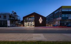 The front façade has been completely reimagined, half escaping the concrete envelope and providing the illusion of a solid corten block when approaching from the west and the other half is dominated by a curtain wall that opens visibility between the public busy street and the gym’s main space.