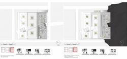 These three stages followed a grid, which was derived from the grid of development of the refugee camps; they began with 3x4 asbestos sheets and zinco roofing, then 6x8 empty spaces, and 12x16 when concrete began to pour into the camps (the entire unit), and these three stages reflect the grid enlargement through the concept of fragmentation to unity.