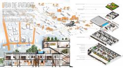 The curious asymmetric nature of Urban one is inspired by the umbrella rock in Koforidua (Boti falls, Ghana). The project is an urban infill which transformed a scanty deteriorated lot into a mixed purpose building located in Kumasi, Ashanti region (Ghana). Kumasi is home to tropical architecture having been dubbed, the garden city of Africa. The project is comprised of 10 apartments, a gym, cafe, office studio space, conference room and rooftop garden terrace. To achieve these, the design chooses a 4-storey mid-rise built- form on one part and the other half of the building constituting a 2-storey. This helps the building achieve an interesting form as well as increase views towards the cityscape and through the apertures carved out of the building volumes.