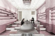 The overall spatial tone is based on an extract of Pu’er tea’s brilliant red color, which is blended into low-saturation pink hues. The pink color palette explains the integration of cosmetics products and tea culture, whilst creating a soothing environment for modern people.
