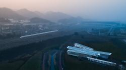 The building features a pure and simplistic appearance. The architectural form takes inspiration from the linear relationships of high-speed railways to create an iconic urban surface that activates the city. Besides, the design also draws on Zen culture of Huayan Temple and incorporates the eight scenic spots of the temple in a modern and abstract manner. The minimalist design languages endow the building with an inclusive character. Through juxtaposition and interpenetration of simple forms via pure languages, the design perfectly combines artistic sensibility with design logic, thereby creating architectural expressions full of linear tension. The interior space and landscape follow the architectural concept, so that the interior and exterior of the building are highly unified and integrated.