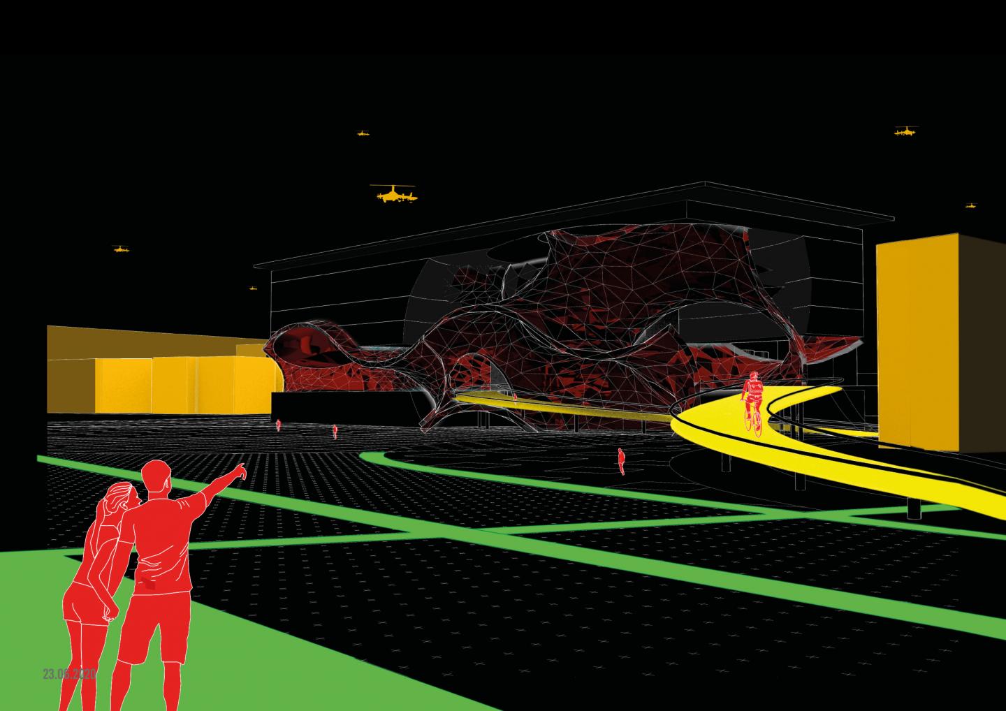 The city of Grenoble will have a new urban attraction square with the implementation of a next-generation urban aviation transport hub. Urban Aviation Transportation hub will supply both social and mobility requirements of the city. While it presents an attraction point with its multifunctional spaces, it will also play a role as a landmark of the technological revolution of city.