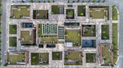 These blocks are surrounded by an overflow pool and trees on the rooftop and in the garden, which not only creates beautiful reflections of the buildings and surrounding landscape but also helps in regulating its microclimate.