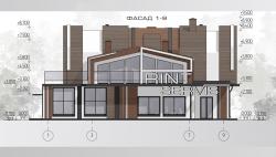 The projected individual residential building with a small business object (printing design studio) has a complex shape in plan with total dimensions in the axes of 19.8x16.8 m. The residential building consists of two floors. The height of the floor is 3.3 m.