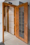 The Master bedroom is created with a unique design where the toilet door was extruded to be a part of the wardrobe, creating an interesting hidden element within the space. Seamless, but the deep margins between segments add a sense of refinement to this wardrobe wall. A lovely approach in a minimalistic bedroom, where you don’t want to draw undue attention to the cabinetry and toilet door.