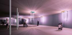 At night, the cables restore the light stored during the day, space wakes up and offers a unique experience to visitors. Similarly, the skylights also coated with bioluminescent paint light up. In the basement, the same phenomenon occurs. Cables attached to the skylights light up and give back the light absorbed during the day.