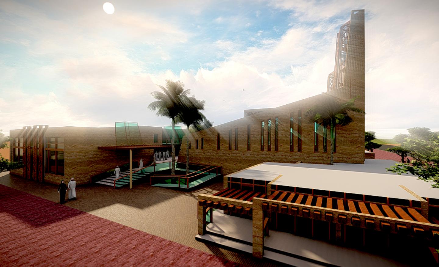 Inspired by the lines of the desert and the rough living conditions, this mosque is designed with careful social study to create not only a place of worship but also a place where people socially and urbanely interact, forming bonds with the society and the built environment.