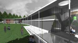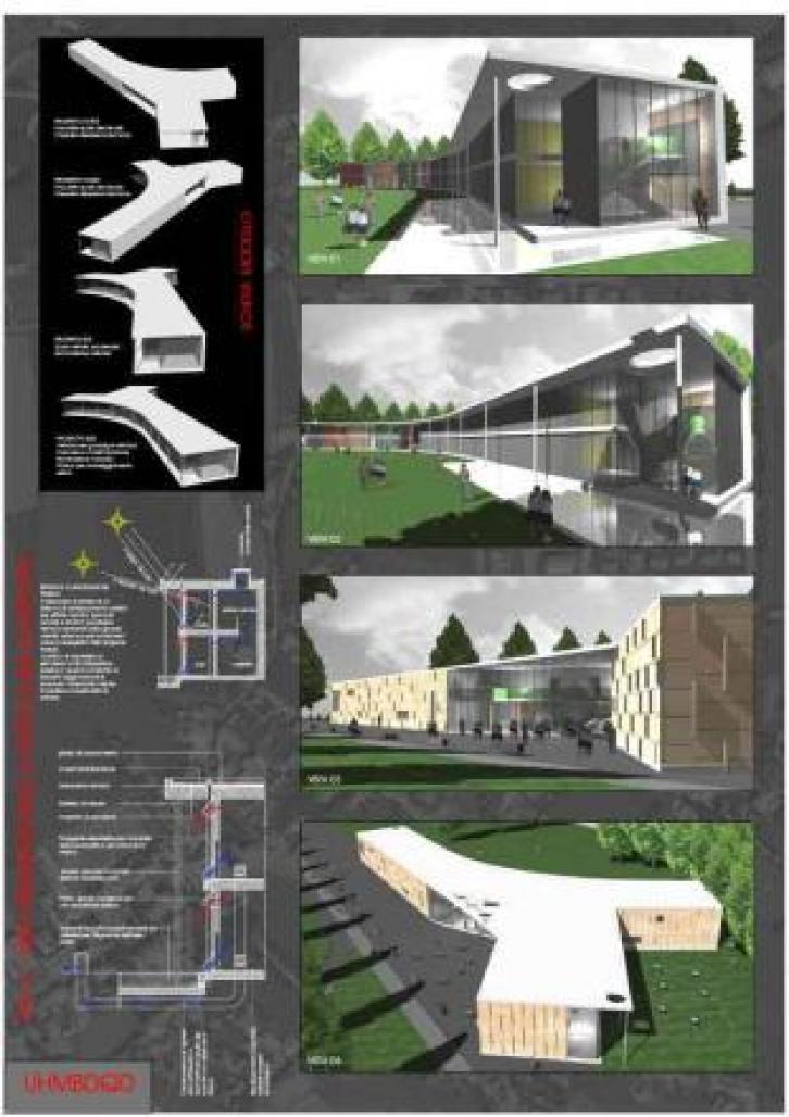 Competition First Prize Sustainable school with low energetic needs The class are oriented at south. The soutern facade is complitely in glass, instead the north facade is totally blind {excluding foyer}