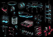 The basic shape of each pylon remains the same no matter its functionality and consists of 5 segments, including a central tower and 4 other around it. These 4 parts differ in height for easy access to the activities they host. The central pillar is the highest not only to connect the rest with each other, but also to support, theoretically and practically, the highest energy production activity which is placed at the top.