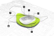 The same topography suggested in the 'Nou Parc' project can be seen in some proposals that were presented for the creation of the Olympic Stadium of the Tokyo 2020 Games. This is the case of DGT Architects or the proposal of GMP Architekten. In both cases, the stadium is covered with a green cloak that allows the transit of people. Another similar example is the proposal for Craterre-Montpellier Arena by Arch. Giovanni Vaccarini.