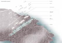 Parts of the landscape are then inserted between the composition's segments, in order for the project to integrate as harmoniously as possible into the existing environment and to complete it as an 'artificial part'. In these areas are placed the basic functions of the hotel, such as an outdoor cinema, rest areas, restaurants, changing rooms, etc.