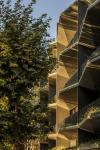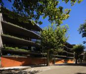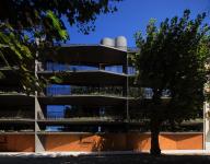 The interior of the property is related to those of the neighboring buildings, through a transition of vegetation and shading elements in concrete and wood.