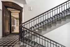 A plaque on the building’s façade informs that it was built by Józef Napoleon Czerwiński and Wacław Heppen – two architects responsible for projects of the most beautiful objects in downtown Warsaw. From the outside of the tenement house is a beautiful, eye-catching and “rippling” façade, on the inside – marble staircase with balustrade decorated by leafy frieze and carefully renovated antique windows and doors.