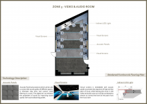 Virtual screens is embedded with acoustic panels to present the sequence of high and low pitch of music while hearing the music in the video and audio room as it will be connected to sensors to control the level of the pitch from the music tone