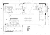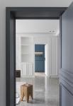 Private space and public space are differentiated in detail through different finishes. The unique color patterned wooden floor and khaki furniture in the living space make this space simple and soft, while the marble floor of the public space creates a sense of life for the living space. In order to meet the family's clothing storage requirements, the design team built a cloakroom in a disadvantaged space. The visual method of space and color matching follow the way of public areas by using the ceiling glass. White warm tone is used on the surface of the furniture that needs to relax contact with the human body, and gray tone is applied to the floor of this space, giving the space a clean and quiet atmosphere.