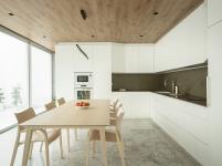 This house, light and clean, never gives the impression that it is between three blind parameters. Its simplicity, geometric clarity and resources which enrich and enhance, result in a resolute, pleasant home which at no point loses spatial quality.