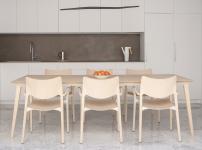 The home is situated on a 120m2 plot in the centre of Elda, with only an 8.64m front on the exterior and 13.34m in depth. The building is on two levels, the ground floor being given over to more social uses, while the first floor has a more family character.