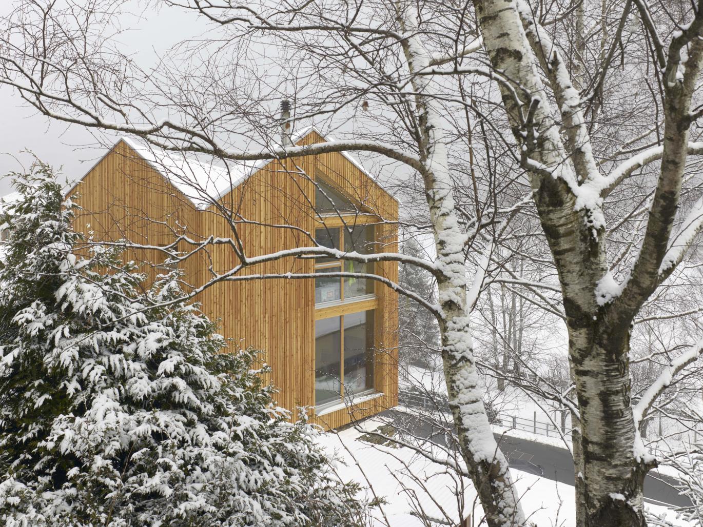 The roof has a complex design at first sight, it is the result of an analysis of the surrounding