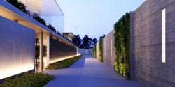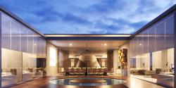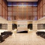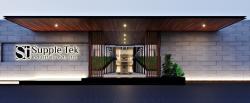 Amidst the lush green fields of Amritsar lies a modern interpretation of the earthiness of the landscape and the authentic way of life. The Supple TEK office building reflects the horizontality of the surroundings in its clean vertical structure and the honest expression of materials, as well as the use of glass in its façade, mirrors the openness and earthiness. The structure is masked and preceded by a sloping green terrace bordering the modern double heightened entrance designed with the same themes of reflectivity and linearity mirroring the façade. The entrance is shaded by a strongly linear wooden pergola over a cobblestone pattern rough flooring aiming to be inviting as well as paying homage to the backdrop. A metal arcade with a slim water channel invites you into the main building and the reflective covering makes for an elegant experiential approach. The play with materiality and the overlay of concrete, brick, stone, and wood lend an air of familiarity to space. Earthy materials and raw finishes combined with a modern sleek design ensure that the building does not override the site qualities. The delicate linearity of the details and accents of muted gold and bronze in the interiors ensure a consistent theme of the interiors with the design language. The outdoors are blended in well with the use of green elements throughout the design down to the detail of the boundary wall. The expanse of the lobby is punctuated with the intricate perforated screens. As a central feature of the design, the spherical skylight breathes light into the interiors, with a sculptural stone element as the focus lending to the atmosphere of the space. As a whole, the balance of the project seems in perfect harmony with the naturality of the place.