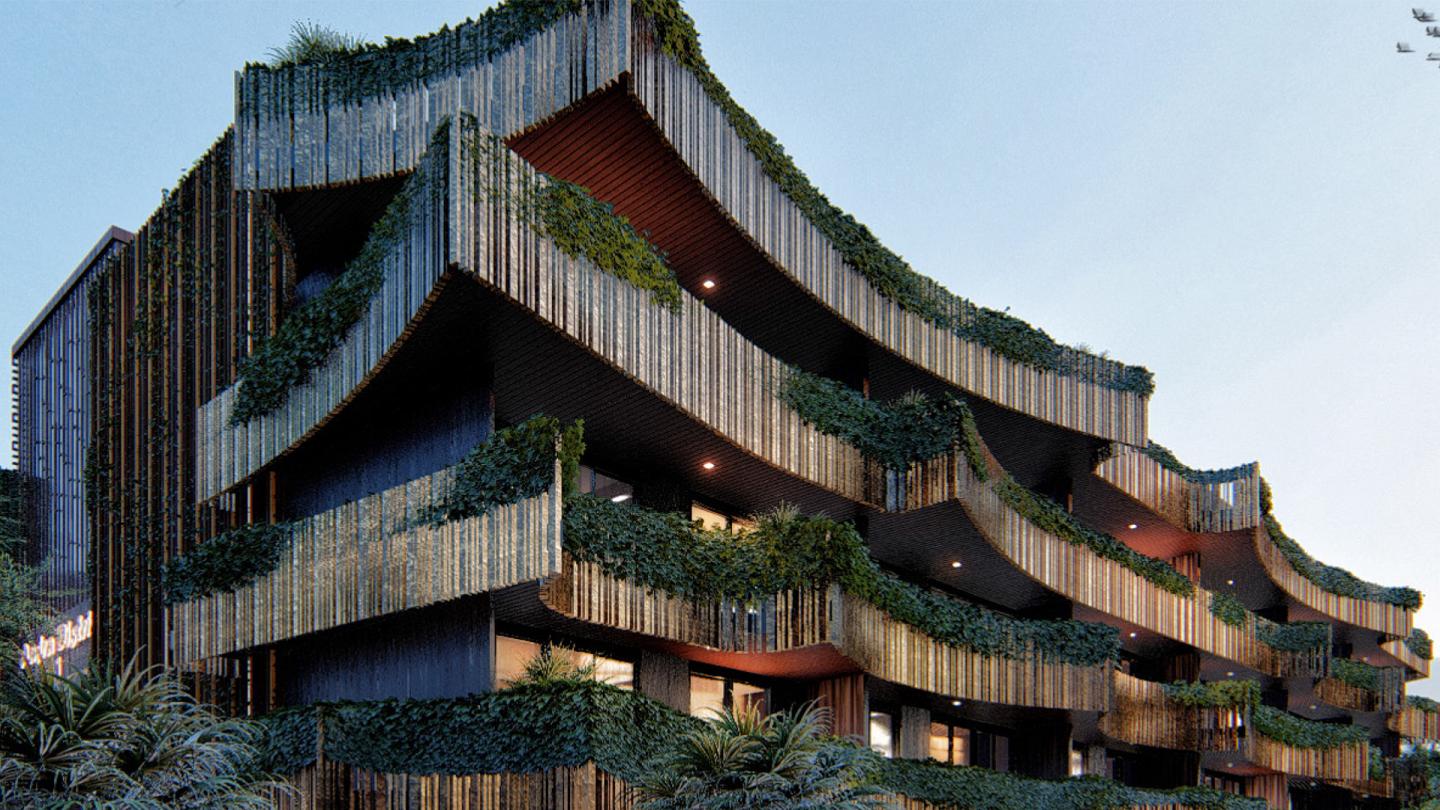 “Amira District” bases its design on the communion between the natural environment and a contrasting geometry with it. The facade emulates the movement of the waves creating dynamism and the material of the facade is indigenous bamboo. The architecture merges with the Nature entering inside the building and going up to the roof top where the social life of each community is flourishes with its unique experiences such as spa, gym, and “bridge pools”.