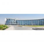 These four laboratory blocks are then connected with a sweeping curve of an administrative complex, that houses all offices, administrative functions, back-end and support functions, as well as the main reception, conference facility and an auditorium that seats 160 people apart from the meeting rooms, video conference chambers and support facilities.