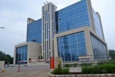 Planned with a grand open entrance and frontage that makes the overall composition look spectacular, the intent was to consolidate the open space at the front and create a stepped massing. Negating the typical courtyard approach, the aim was to craft a front consolidated open space and naturally-lit, closed areas. Multiple rows of trees along the boundary wall work towards creating a visual green buffer, augmenting the façade aesthetic as well as acting a sound barrier between the building and outside environment. Further, the building aligns itself with the Southern Peripheral Road in such a manner that the two facades become visible with cohesiveness yet variety, for travelers going on either direction of the carriageway.