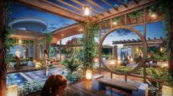 Creatively expressing cohesiveness with nature, beauty and green spaces, the curvaceous roof forms are a tribute to the large Peepul or Bargad tree canopies, that provideshade to man-made hardscapes.The roof canopies bring respite and relief to the terrace, that is crafted asa long, connected expanse of 500 feet, arranged in meandering walk-ways, with shaded seating places, locations for congregation, meditation, yoga or leisurely strolls, chat sessions etc. The club, which is the cynosure of any residential development, has been positioned at the cross roads of the current and future development in order to create a formthatdoesn`t block views, yet invites surreptitiously into its domain; a formthat one enters without realizing that you have arrived!In sharp contrast to the typical forms of residential development, Ikebana is developed as acurvilinear form,wrapped,merged and in resonance with the landscape; a form in which the outdoors gradually melt intothe Indoors, softened and aided by a languid pool and entry puddle. Together with the usual componentof a multi-cuisine restaurant, a party hall, AI-Fresco pool-side dining, health and wellnessgymnasium et al, the massive roof top is manicured and developed to bring nature and humanity together. The site landscape is laidback, formal yet lazy, with unpunctuated greens of almost an acre interspersed with tot-lots, fragrance gardens, activity zones, with a Japanese penchant for immaculate arrangements built into the spirit of design.
