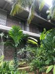 Landscape – The open landscape court between the three blocks is designed as a green space filled with tropical foliage plants. They are connected through pathways laid with gravel beds. The layers of tropical foliage plants are dense so as to provide required silence and privacy needed for the seekers. The existing rocks are a part of the landscape and random rubble stones are used for pitching the level difference.